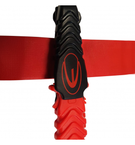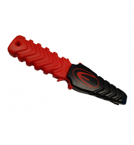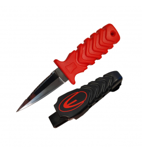 This compact and high-performance knife, with a 440C marine stainless steel blade, offers excellent resistance and great efficiency thanks to its needle-point design, serrated on one side and sharp on the other. Its red PP handle incorporates a practical “easy clip” attachment system, while its compact black sheath allows for quick one-handed release. Straps sold separately.