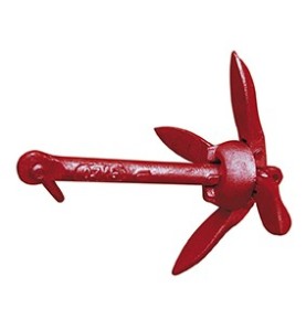 700gr grapnel with red coating for buoys and spearfishing raft boards. Holding ring for open or closed position.