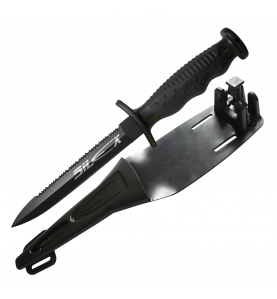 Un verdadero ícono de nuestra marca desde el principio, la daga Silex es una referencia en el mercado, reconocida como una de las mejores. Su hoja desmontable de acero inoxidable con revestimiento de titanio negro ofrece una durabilidad excepcional, resistencia a la corrosión y un excelente filo. Su mango ergonómico de doble material garantiza un agarre perfecto, mientras que su funda flexible con doble seguridad asegura una sujeción óptima. Se entrega con sus correas y sigue siendo una opción segura para los apasionados que buscan fiabilidad y rendimiento.