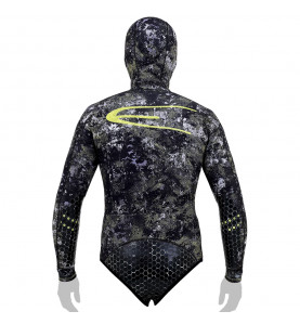 La combinaison de chasse sous-marine TACTICAL STEALTH, clairement notre best-seller, a nécessité de longues heures de développement pour atteindre un niveau de style inégalé. Son camouflage tactique nuancé avec des touches de jaune et son logo inspiré du personnage "Punisher" jaune vif lui confèrent un style agressif mais discret.